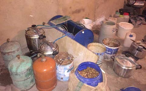 كما مكنت عملية التفتيش بداخل هذه الورشة من حجز 660 كيلوغراما من المواد الأولية و20 قنينة غاز ومولد حراري للكهرباء، علاوة على مضخة للمياه ومجموعة من الأواني والمعدات التي تستعمل في تقطير مسكر ماء الحياة. وتجري حاليا مصالح الشرطة القضائية بواد زم بحثا قضائيا تحت إشراف النيابة العامة المختصة، وذلك للكشف عن جميع ظروف وملابسات هذه القضية، وكذا توقيف المشتبه فيهم المتورطين في هذا النشاط الاجرامي.