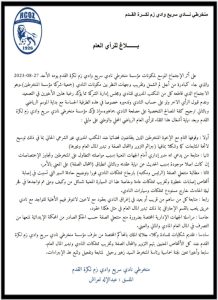 على أثر الإجتماع الموسع لمكونات مؤسسة منخرطي نادي سريع وادي زم لكرة القدم يومه الأحد 27-08-2023 والذي جاء كمبادرة من أجل لم الشمل وتقريب وجهات النظر بين مكونات النادي (جمعية-شركة مؤسسة المنخرطين).وهو الاجتماع الذي قاطعه كل من المكتب المديري للنادي ومجلس إدارة الشركة مما يؤكد رغبة هذين الأخيرين في التصعيد وعدم قبول الرأي الاخر ولو على حساب النادي وتدميره خصوصا في هذه الطرفية الحساسة مع بداية الموسم الرياضي وبالتالي ترجيح كفة المصالح الشخصية على مصلحة النادي جماهيره.وإذ تؤكد مؤسسة منخرطي نادي سريع وادي زم لكرة القدم وبعد نهاية أشغال هذا اللقاء للرأي العام الرياضي المحلي والوطني على مايلي :