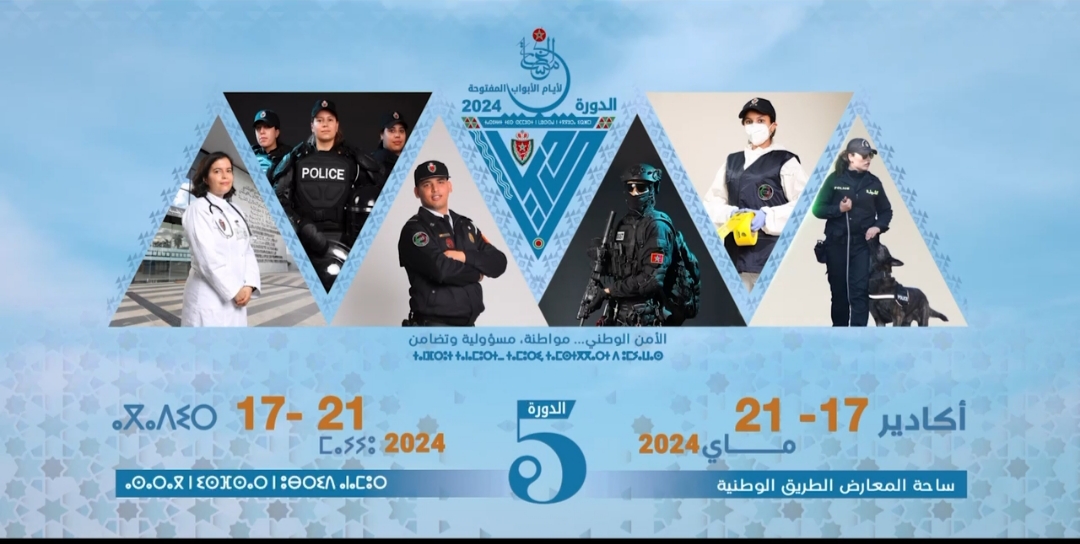 تحت شعار “الأمن الوطني.. مواطنة، مسؤولية وتضامن تنظم المديرية العامة للأمن الوطني، من 17 إلى 21 ماي 2024، الدورة الخامسة لأيام الأبواب المفتوحة بمدينة أكادير. تأتي هذه الدورة لتجسّد التزام المديرية الراسخ بتعزيز التواصل مع المواطنين، وتكريس مبدأ المشاركة والتضامن في حفظ الأمن والاستقرار.