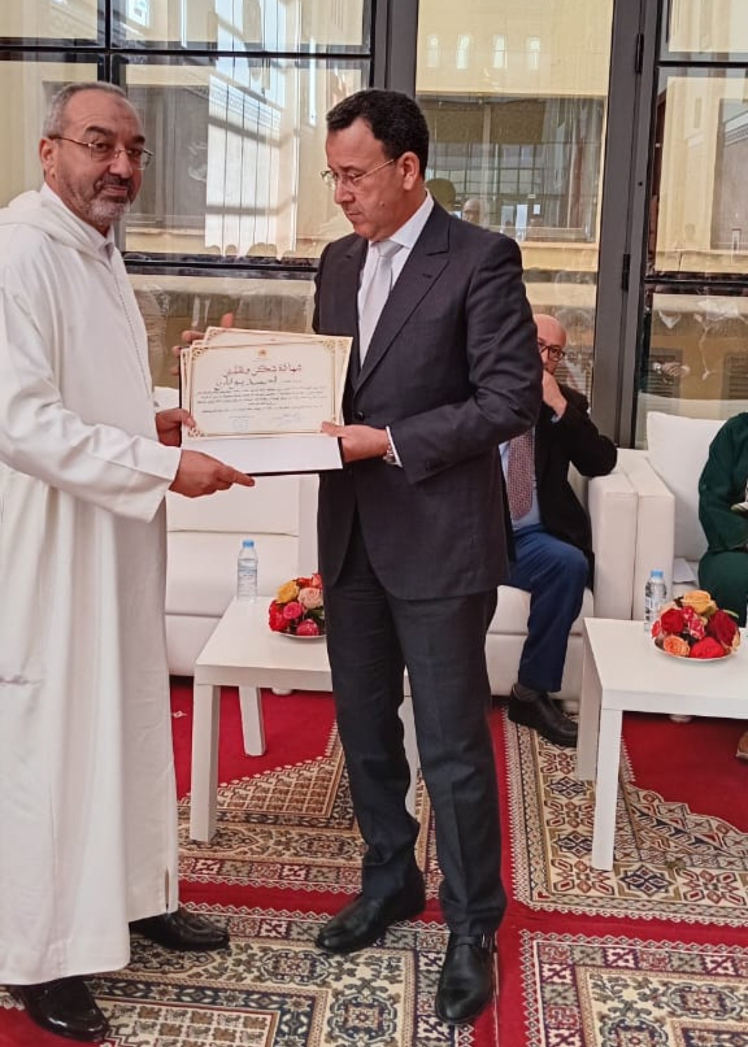 الاستئناف بالعيون إضافة إلى عدد من المسؤولين القضائيين وأطر المحكمة و خلال الحفل تم  توزيع شهادات تقديرية وهدايا رمزية على الموظفين المتفوقين وسط أجواء احتفالية تعكس روح العمل الجماعي والالتزام بالمهنية يؤكد هذا التكريم حرص المحكمة الابتدائية بالعيون على دعم وتحفيز موظفيها وتشجيعهم على مزيد من العطاء بما ينعكس إيجاباً على جودة الخدمات القضائية المقدمة للمتقاضين كما يعزز مكانة القضاء كمرفق حيوي لتحقيق العدالة مرتكزٍ على المهنية والإخلاص في أداء المهام