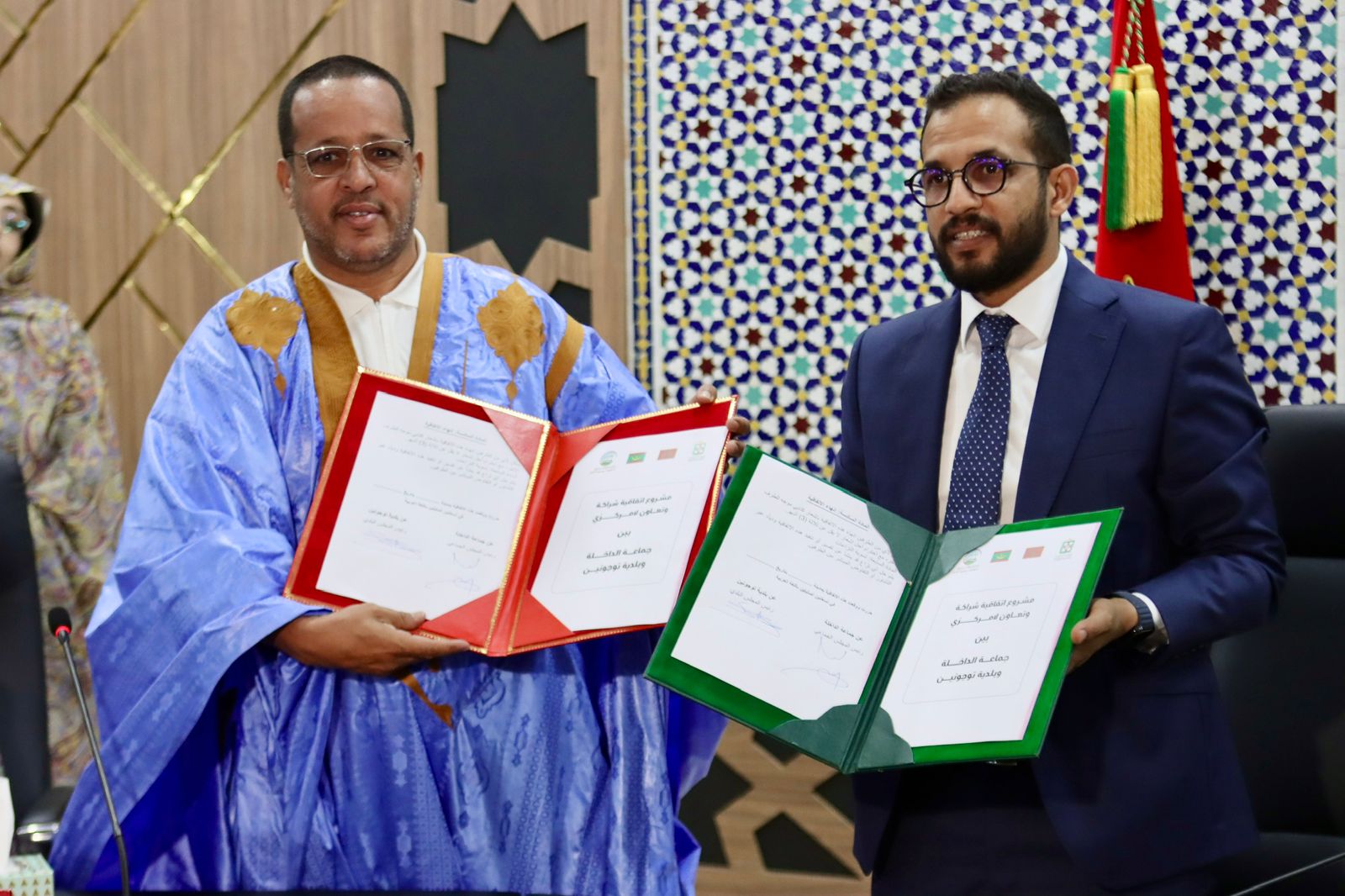ترأس اللقاء الراغب حرمة الله، رئيس مجلس جماعة الداخلة، بمشاركة حبيب الله أحمد سالم، عمدة بلدية توجنين، وحضور أعضاء وأطر المجلسين.